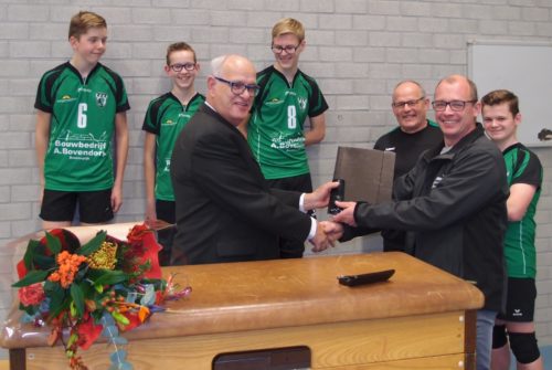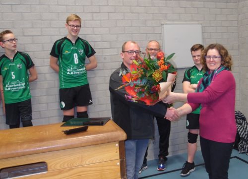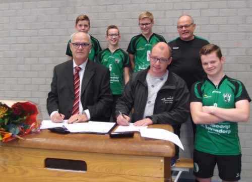 En nog meer goed nieuws. Bouw- en timmerbedrijf Bovendorp heeft de sponsorovereenkomst met Jongens B1 verlengd naar vijf jaar. De trouwe sponsor besloot het talentvolle jeugdteam ook de komende jaren als shirtsponsor te blijven ondersteunen. Daarmee speelt ook JB1 nu in EVV’s nieuwe kledinglijn. Ook hier dus blije gezichten bij team, sponsorcommissie en voorzitter. En een mooie bos bloemen voor de sponsor!