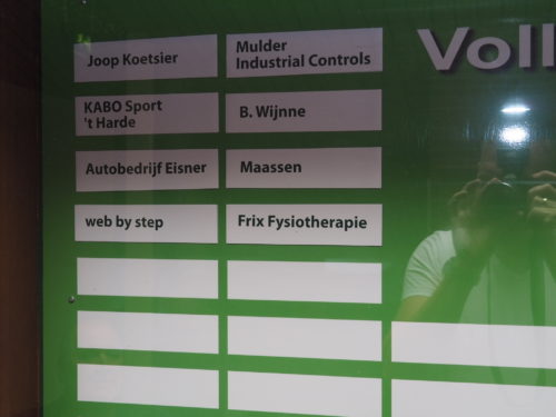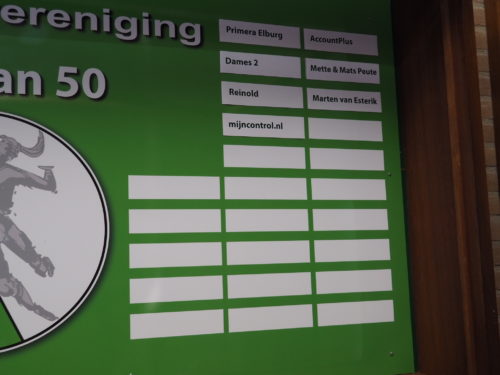 En daar is-ie dan: het grote “EVV Club van 50”-bord. Op een prominente plek onder de trap naar de tribune van ‘t Huiken prijken sinds enige tijd de namen van de eerste 18 leden van EVV’s Club van 50. De Club van 50 wordt gevormd door een groep mensen die EVV een warm hart toedragen en daarvoor op vrijwillige basis jaarlijks een bedrag van € 50,00 doneren. Met dit geld kan EVV activiteiten bekostigen die de normale begroting te boven gaan. Het is natuurlijk prachtig dat zich in de eerste ronde al 18 leden hebben aangemeld voor dit nieuwe initiatief vanuit de sponsorcommissie, maar zoals te zien biedt het bord plaats genoeg voor een nog veel groter aantal. Wil jij EVV op deze steun manier ook steunen en een vermelding op het fraaie bord krijgen? Meld je dan aan via de Club van 50-pagina op de EVV-site; daar lees je ook meer over het lidmaatschap en de besteding van de gelden. Inschrijving staat open voor iedereen: voor leden, niet-leden, bijna-leden en/of familieleden, alleen of als groep, als privépersoon of bedrijf. Laten we met z’n allen zorgen dat het bord bommetjevol wordt!!