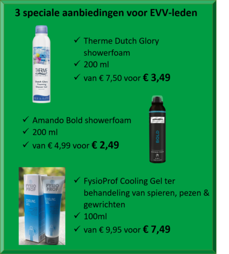 Speciaal voor EVV-leden voert eigenaar Frank Janssen een mooie actie. In de decembermaand krijgen EVV-leden korting op onderstaande producten: