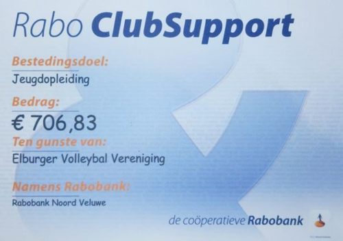 Afgelopen vrijdag 6 november ontvingen alle deelnemers per post een cheque met daarin het bedrag dat zij uit het ClubSupport fonds mogen ontvangen. Voor EVV vermeldde de cheque het prachtige bedrag van € 706,83. Dit bedrag komt overeen met 220 uitgebrachte stemmen!