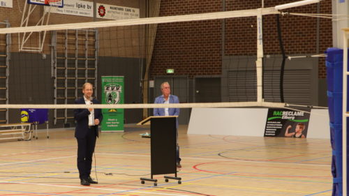 Na een welkomstwoord van voorzitter Bertus Wijnne feliciteerde burgemeester Jan Nathan Rozendaal het team en de vereniging met de promotie naar de Topdivisie. Hij gaf aan trots te zijn op het feit dat een Elburgs sportteam op het één na hoogste landelijke niveau uitkomt en op de enorme inspanningen die binnen de vereniging worden verricht om dit mogelijk te maken. Uit handen van Bertus Wijnne ontving de burgemeester vervolgens het eerste exemplaar van EVV’s presentatiemap. Aansluitend stelde oud heren 1-speler Rik Straatman de spelers en staf voor aan de goed bezette tribune. Een voor een betraden de mannen de door de opbouwploeg (hulde, mannen!!!) tot volleybalarena omgebouwde sportvloer (centercourt met reclamebordenring, wissel- en strafvak, netpaalbescherming en straks bij de wedstrijden ballenrollers, quickmoppers en een heuse DJ). Speciale aandacht was er daarbij voor de nieuwkomers Jarno van der Weerd, Laurens Kamphuis, Gerard van het Goor, assistent-trainer Siemen Klaver en teammanager Gerard van Esterik.