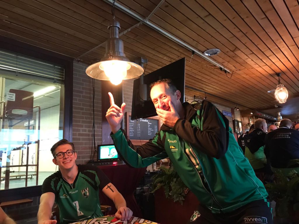 Normaal gesproken is dit het einde van het wedstrijdverslag, maar wij willen graag nog wat aandacht voor ons goede doel. Net als vorig jaar hebben wij ons voorgenomen om, gezien het overweldigende succes van vorige jaar, ook onze lokale (horeca)sponsors weer de winter door te helpen. Wim was echter nog steeds met z’n hoofd bij de wedstrijd, en het bijbehorende advies… Hierdoor moest ook het glaswerk het ontgelden (gelukkig was het glas leeg, anders zou het ontzettend zonde zijn geweest), maar nadat wij uit veiligheidsoverwegingen overgeschakeld zijn op plastic glazen is de avond verder zonder incidenten verlopen.