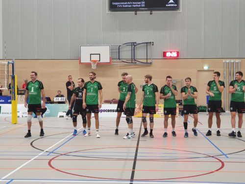 En dat ging best prima. Wij serveerden als mallen, Keistad passte niet zo best. Dat was ook niet verwonderlijk, want ze hadden een kwartier netjes op volgorde kaarsrecht langs de zijlijn staan wachten tot wij zover waren. Wouter besloot dat de antennes toch wel erg ver weg waren en beperkte zich tot wat luie balletjes op midden. En in no-time hadden we de eerste set te pakken! 15-18 voor ons. Op naar het eerste punt in een uitwedstrijd. ““Neeneenee, STOP, STOP, zo doen we dat niet!!” Scheidsrechter Pool weer… “Hoe lang spelen jullie nu al topdivisie, heren? En wanneer is een set afgelopen? Bij 25 pas!!”. Dat was me nogal een tegenvaller. Keistad-coach Ruijterlinde (naast Orion’s Marco Buiting een van de meest geslepen oefenmeesters op dit niveau) had geleerd van het incidentje voor de wedstrijd en liet zijn ploeg dit keer niet wachten tot wij snapten hoe het in elkaar zat. Toen we weer een blik op het scorebord wierpen stonden we ineens met 22-18 achter. En hoewel wij mentaal onverslaanbaar zijn, wisten we het dit keer niet om te draaien. Tja, en de rest van de wedstrijd was best overzichtelijk. Keistad was steeds net wat eerder bij de 25. Van meneer Pool mochten we geen vierde set meer spelen, dus geen bonuspunten deze week. We consolideren daarmee onze 12e positie op de ranglijst, die al een beetje als “thuis” begint te voelen. Maar de pitchers in de kantine verzachtten de pijn.