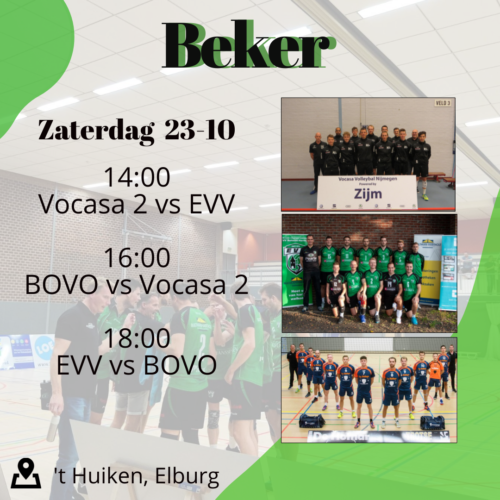 Dit weekend beker in ‘t Huiken, 2 potjes zelfs. Dat wordt weer een helse klus. We gaan de lessen van vorig weekend in praktijk brengen. En houden daarom voor de zekerheid het 1e divisieprotocol aan. Niks voorstellen spelers, lekker op het veldje overdwars, altijd een vierde set en tussen de wedstrijden door stiekem roken bij de fietsenrekken. Ik heb even gekeken, scheidsrechters zijn de heren Klinge, Schulte en Broekhof. Voor de zekerheid zullen we vooraf ff bij ze checken tot hoeveel punten de sets gaan…