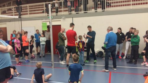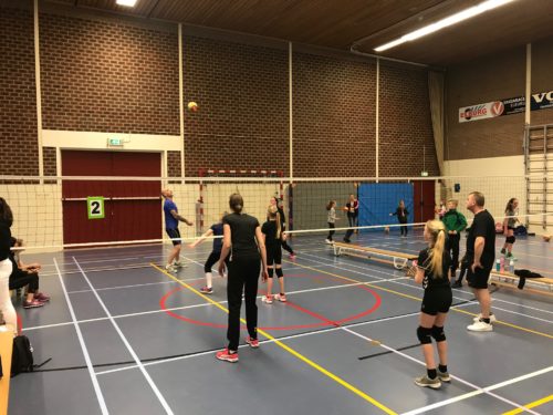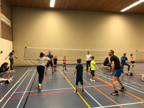 Vanaf 17:30 kwamen de mini’s langzaam de sporthal binnen druppelen. Ze waren allemaal toch wel erg benieuwd bij wie ze in het team zouden zitten die avond. Daarna konden de kids nog even hun ouders uitleggen hoe ze moesten serveren en onderarms spelen. Nadat iedereen goed was warm gespeeld begon om 17:50 de eerste wedstrijdronde. Er werd fanatiek gespeeld en de kinderen gingen voor iedere bal. Maar ook aan de sportiviteit van de ouders ontbrak weinig! Ballen werden op de meest moeilijke posities gevangen en ook erg tactisch terug gegooid. Het waren allemaal spannende wedstrijden en het duurde erg lang voordat er een veld leeg gespeeld was.