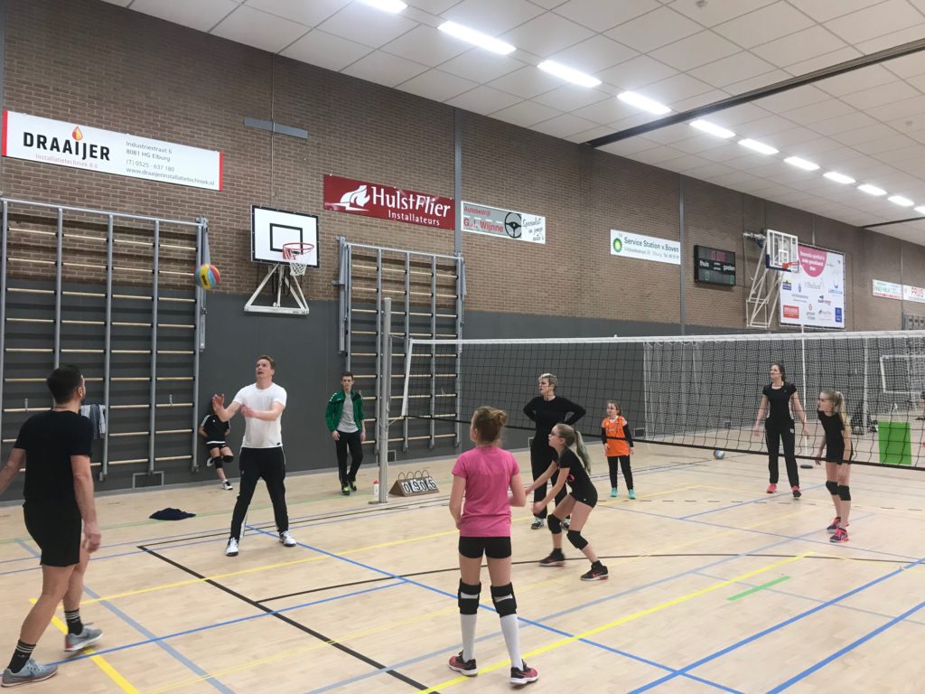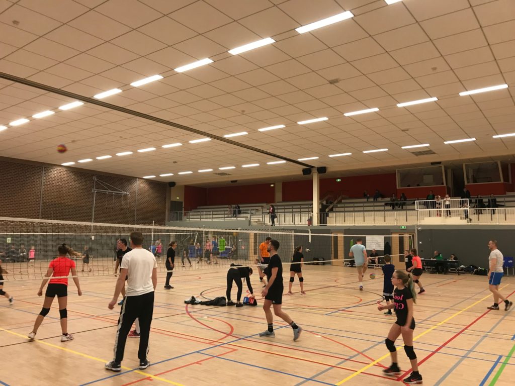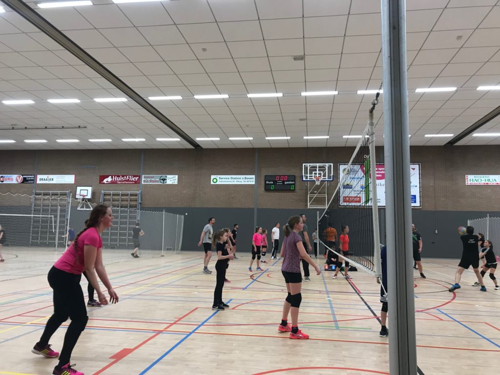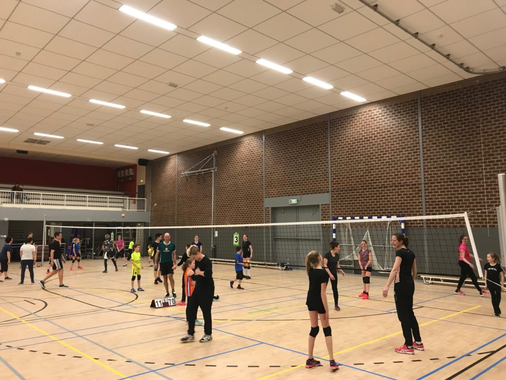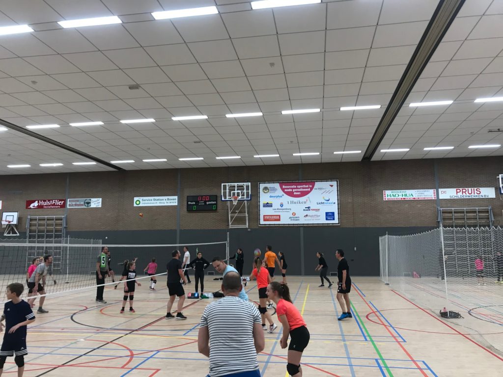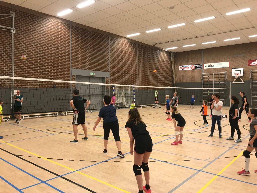 In poule A, de kinderen uit niveau 5 en 6, speelden de teams het spelletje met onderarms spelen en vangen (niv.3). Zowel de ouders als kinderen liepen het hele veld door om de bal van de grond te houden. Zelfs de moeilijkste ballen werden van de grond gehaald door onderarms te spelen. Uiteindelijk heeft team 6 de medaille in de wacht gesleept. Lindsey, Kim en hun vaders waren het voorbeeld: pas als de bal echt op de grond is, is het een punt. De meest onmogelijke ballen werden door hun gespeeld.
