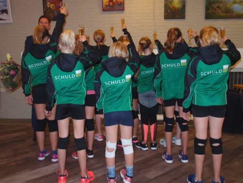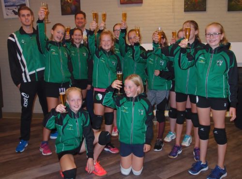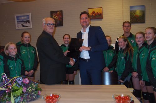Namens respectievelijk bestuur en sponsorcommissie bedankten Bertus Wijnne en Marielle Held Corstiaan Schuld voor zijn ondersteuning van de jongste EVV-talenten. En de teams hieven goed gekleed het (uiteraard alcoholvrije 🙂 ) glas op een succesvolle samenwerking.