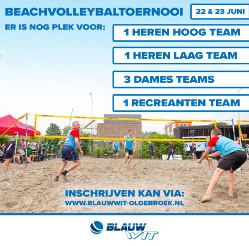 Jullie hebben nog de eindstand tegoed van het EVV Arie Zwijnenburg beachvolleybaltoernooi 2017 op het Schootsveld in Elburg. Na vele mooie wedstrijden en een paar spannende finales zijn dit de eindstanden in de verschillende categorieën: Nog even wat cijfers, om te laten zien dat er heel wat gebeurt voor, tijdens en na zo’n toernooi: op woensdagavond is het parkeerterrein autovrij gemaakt en met 75 hekken afgezet. Putjes werden afgedekt. op donderdagochtend waren ook de laatste 4 auto’s van het beachterrein vertrokken, en kon om 6:30 door Van Gelder worden begonnen met zand storten. In totaal is er ongeveer 950 m3 op de twee deelterreinen neer gelegd en vlak gestreken om 17:00 kon de bulldozer machinist tevreden naar huis. Op een oppervlakte van een kleine 3600 m2 lag gemiddeld ongeveer 25 cm zand op vrijdagochtend om 8:00 werden de 22 palen, 18 netten, 756 m belijning, 3 tenten en alle andere benodigdheden gehaald vanaf 9:00 konden de 18 velden bij een mooie werktemperatuur (warming-up was niet nodig) worden opgebouwd rond de middag stonden 13 velden (bijna allemaal strak), en waren de overige 5 velden al voorbereid; na de lunch verder, en om 15:00 was alles klaar om 18:45…
