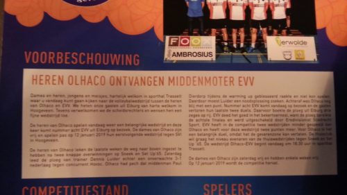 Zo, alle oliebollentoernooien, kerstdiners, nieuwjaarsrecepties, oudjaarsconferences en nieuwjaarswensen zijn weer achter de rug. Het was weer een heerlijke vakantie voor de meesten. Ook in Elburger omgeving hebben we er van genoten. De vakantie was dan ook heerlijk lang. Zo lang zelfs, dat we niet meer wisten dat er getraind moest worden. De traditionele trainingsavonden hebben we dus maar gevuld met feestjes, nutteloze ritjes naar Elburg en potjes 1 vs 1 volleybal tegen de trainer. De vakantie was zelfs zo lang dat sommigen spontaan niet meer wisten bij welke vereniging ze volleyballen. Onze toch al zeer beperkte selectie is hierdoor redelijk veranderd en alleen nog maar kleiner geworden. Onze aanwinst van dit seizoen, de heer Rijers, gaf aan spontaan ambities te hebben en wilde graag meetrainen in de klederdracht van zijn idolen. We hoeven er geen geheim van te maken dat dit soort acties niet door de beugel kunnen en daarom hebben we helaas zonder fatsoenlijk afscheid gedag gezegd tegen de heer Rijers. En daarom zijn we, ter versterking van onze selectie, met spoed op zoek naar een spelverdeler van 2 meter, een middenman die op zaterdag doorgaans géén kater heeft, een libero die, bij voorkeur, kan passen, een diagonaal die…