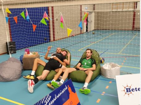 Hoi Marieke, Vorige week mochten we de volleybal competitie beginnen tegen Olhaco uit Hoogeveen. De jonge jongens waren (zoals bij elke uitwedstrijd) erg gespannen, want waar ligt Hoogeveen? Broodtrommeltje mee, rugzakje op en bij de grote mannen in de auto! Bij aankomst bleek dat het echt een snoepreisje werd. Olhaco (nu al de sportiefste ploeg van 1A) had voor ranja, snoep en zitzakken naast het veld gezorgd. Het speelkwartier was begonnen.. Wat wij niet snel genoeg door hadden, dat dit een afleidingsmanoeuvre van onze Hoogeveense gastheren was. Zij waren al snel begonnen aan de wedstrijd, en de Elburgse prutsers lagen nog in de zitzakken. Na een 2-0 achterstand in sets, waren de snoepjes op en de ranja kannen leeg. Er was geen 2e ronde snoep en zopie, dus gingen we maar volleyballen. De verhoogde suikerspiegel deed het goed bij een aantal spelers, zelfs zo goed dat we op 2-2 in sets kwamen. Toen kwam natuurlijk de apotheose, de vijfde set! Er was afgesproken eerst even af te wachten tot we aan de goede kant van het veld stonden(Wouter had weer verkeerd gekozen) en vervolgens genadeloos toe te slaan. Zo gezegd zo gedaan, resultaat 15-13 gewonnen in de vijfde set en de eerste 3 punten van het nieuwe seizoen. Vanmiddag mogen we thuis tegen…