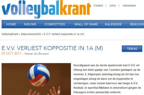 Hey Marieke, Leuk om weer van je te lezen!! Je had een mooi potje uitgekozen om weer eens langs te komen. Het onvolprezen EVV-organisatiecomité had alle registers open getrokken om er een lekker bekerspektakel van te maken. En dat is uiteraard weer gelukt. Hulde aan Henk de Man, Gerard Broekema en ‘floormanager’ Gerrit Mulder!!! Maar de hoofdrol was natuurlijk weggelegd voor de ballenkids, die onder deskundige aansturing van Clubheld 2017 Pim Kambeel (stem hier!!), de drie wedstrijden op rolletjes lieten lopen. In het verslag van het bezoekende Compaen werd dit nog eens terecht onderstreept (klik hier). Dank jullie wel, Iris, Jasmijn, Lieke, Annelien, Anne-Roos, Aniek, Kiki, Elvira, Maud, Isa, Neomi, Tristen, Sifra en Thijs!!! Dat jullie af en toe per ongeluk ‘booe-boe’ riepen als de tegenstander wilde serveren is jullie vergeven hoor… Uiteraard hebben we ons als Heren 1 zelf ook ingespannen. Tegenstander Cito had de week voor de bekerwedstrijden nog een onprettige ervaring gehad met een vochtige zaalvloer in Hoogeveen. Dat wilden wij in Elburg natuurlijk niet laten gebeuren. En dus hebben we vlak voor de eerste wedstrijd nog even de Zamboni-dweilmachine van stal gehaald. We hebben van Cito geen klachten meer vernomen. Van Compaen ook niet, maar…