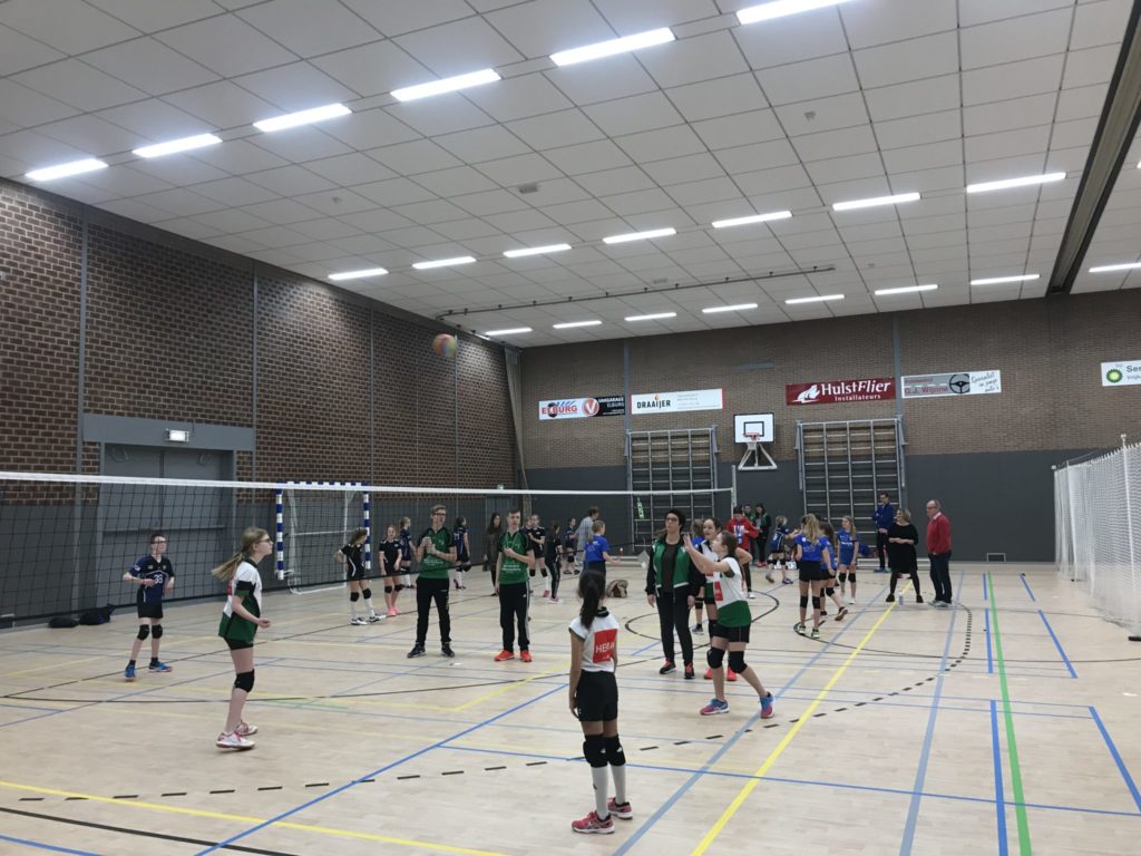 Voor de cmv’ers van EVV een mooie gelegenheid om in de eigen sporthal hun ouders, broertjes, zusjes, opa’s en oma’s te laten zien hoe goed ze allemaal kunnen volleyballen! De tribune zat goed vol de hele ochtend.