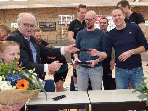 Ook de komende jaren lopen de mannen van het eerste herenteam er voor de wedstrijd weer goed gekleed bij. Trouwe sponsor Webbystep verlengde namelijk de sponsoring van de inspeelshirts. Webbystep – ontwerper van websites en leverancier van webdiensten – ondersteunt het eerste herenteam al sinds 2015. Voor de laatste thuiswedstrijd zetten de Roel Lindeboom en Henry Schuurman namens Webbystep en Bertus Wijnne namens EVV hun handtekeningen om de voortzetting van de samenwerking te bekrachtigen. Talenten van de week Merel Schuurman en Yfke van der Wielen verrasten de sponsoren met een mooie bos bloemen.